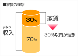 家賃の理想家賃は手取り収入の30%程度に抑えておくことが賢明だといわれています。